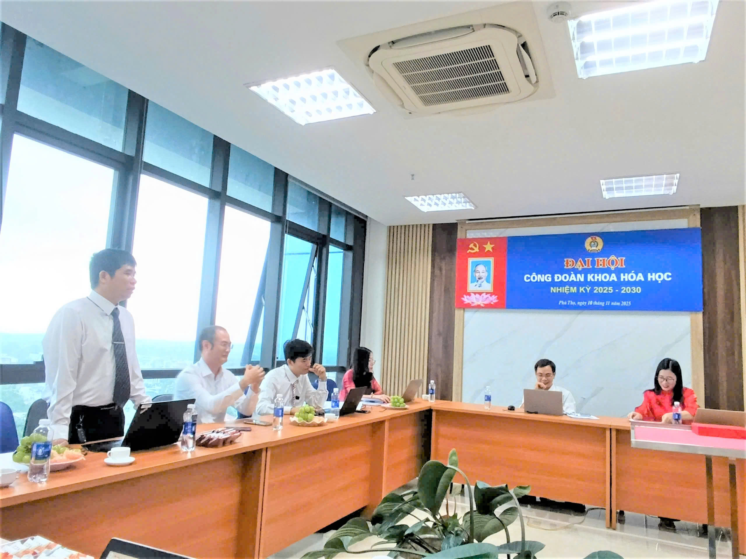 Phát biểu chỉ đạo tại Đại hội, đồng chí Lê Cao Khải - Ủy viên Ban Chấp hành Công đoàn Trường đã ghi nhận và biểu dương những thành tích nổi bật của tập thể Công đoàn khoa Hóa học trong thời gian qua. Đồng chí bày tỏ niềm tin tưởng rằng Công đoàn khoa sẽ tiếp tục phát huy tinh thần đoàn kết, sáng tạo, không ngừng đổi mới nội dung và phương thức hoạt động, đóng góp tích cực, hiệu quả vào phong trào của Công đoàn trường và sự phát triển chung của Nhà trường trong nhiệm kỳ mới.