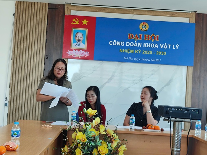Với tinh thần “Đoàn kết - Dân chủ - Kỷ cương - Đổi mới - Phát triển”, Đại hội Công đoàn Khoa Vật lý nhiệm kỳ 2025 – 2030 đã thành công tốt đẹp. sự thành công của Đại hội góp phần củng cố tổ chức công đoàn, phát huy vai trò đại diện, chăm lo, bảo vệ quyền và lợi ích hợp pháp, chính đáng của đoàn viên, xây dựng môi trường làm việc dân chủ, đoàn kết, nhân văn và chuyên nghiệp.